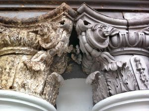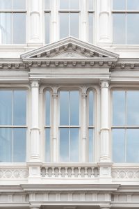 “The $4.5 million project was phased, with the first phase being the façade restoration, and the second, final phase being the reconstruction of the sidewalk, which is currently being completed,” said Christa E. Waring, AIA, LEED AP, CTA’s Principal in Charge. “It was an extremely involved, painstaking process involving extensive restoration as well as the replication of over 1,000 incredibly intricate cast-iron units, including formed metal cornices and pediments. In addition to the extensive cast iron, there is sheet metal ornamentation on the façade, on elements such as the cornices. All renovation work was performed from pipe scaffolding,” she added.