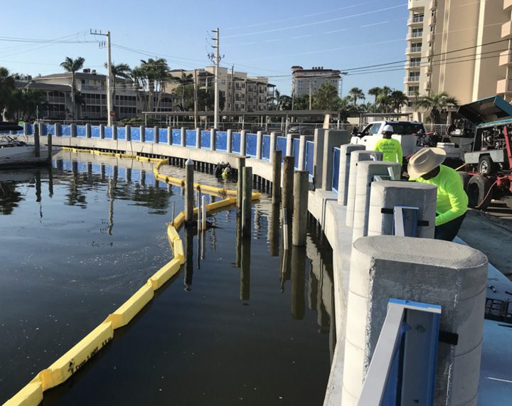 “Permits and/or exemptions were required from the Florida Department of Environmental Protection (FDEP) and the U.S. Army Corp of Engineers (USACOE),” notes Kuzler. “To avoid permitting delays and meet grant funding deadlines, an FDEP exemption was obtained that required the new seawall be no more than 18 inches more seaward than the existing wall. The USACOE had very specific construction conditions—including no hammering of piles—to protect marine life.”