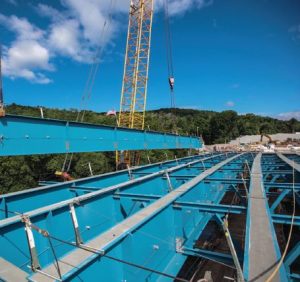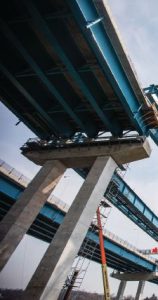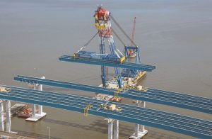 Precast concrete segments were formed in Schuylerville, N.Y., as well as at locations in Pennsylvania and Virginia. Steel reinforcement cages were wired together in Rockland County, and the bridge’s massive steel girders—measuring 12 feet tall and 350 feet long—were manufactured in Pennsylvania, assembled at the project’s Port of Coeymans facility south of Albany, N.Y., and brought by barge to the project site. The girders serve as the bridge’s connective tissue by joining the piers and supporting the bridge’s roadway.