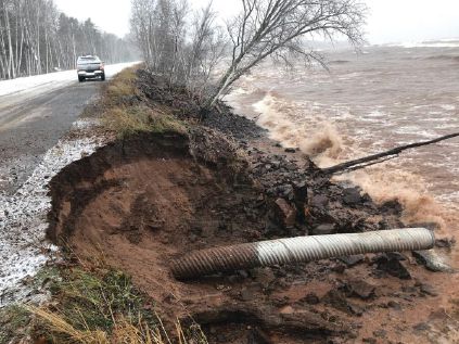 Hundreds of miles away in Upper Peninsula Michigan, an estimated $550,000 emergency repair on County Road 107 started in August 2019 where erosion from Lake Superior threatened the access road to the eastern side of the Porcupine Mountains.