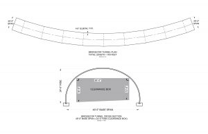 The final tunnel design was 704 feet long with nine 4.6-degree elbows spaced every 79.5 feet to create a long radial curve. The resulting structure design was based on a 49.5-foot span with a 24-foot rise to allow for the required clearance box.