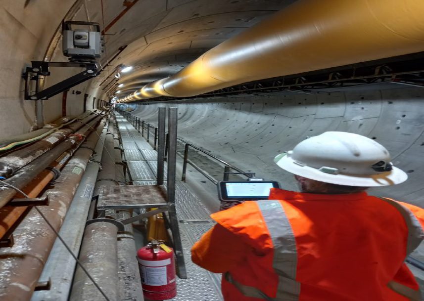 In the tunnels, the teams have been setting out targets at set intervals––every 80 meters inside the TBM tunnels and 50 meters inside the mined tunnels––and then building a secondary network off those to fill the gaps and provide control on both sides of the tunnel. With those primary and secondary control networks, Williams maintained site control at the surface and in the tunnels at 3 millimeters or less.
