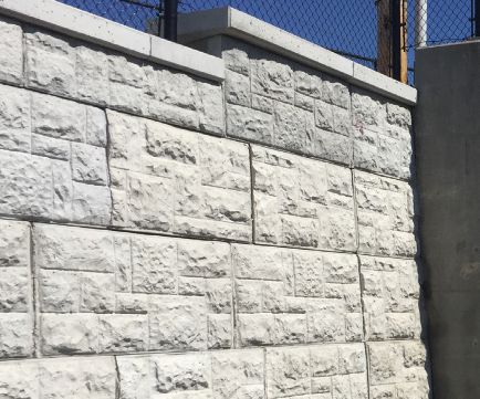 With a utility pole right in line with the wall, Schrimpf’s team was able to install the face panel in front of the pole and between the extenders, saving additional time and money that would have come from relocating the pole. The lighter-weight, two-piece design made it possible for installers to use smaller equipment. The system also features 2- and 4-foot extenders that were chained together to create longer lengths for taller walls. Because the extenders were separate from the face of the wall, they were poured on a different set of forms, which allowed the producer to stockpile standard pieces and make the face pieces as needed for an efficient production environment.