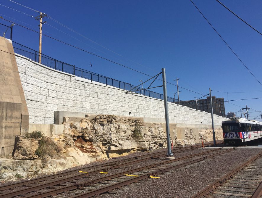 That’s especially true where MetroLink is concerned, according to Schrimpf. “They have a lot of wall along their tracks made of smaller modular blocks that are susceptible to movement issues because of the vibration caused by the trains. The MagnumStone retaining wall system hasn’t moved a bit,” he notes.