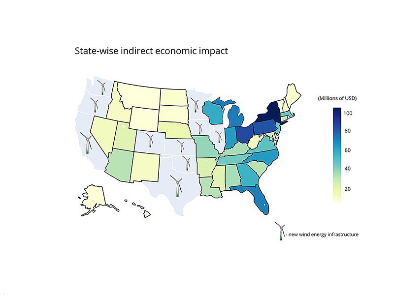 “While the impacts are directly felt in the state experiencing the increase in economic activities due to installation of new wind energy generation capacity, the positive economic effects also spill over as shown by the MRIO calculations,” the authors wrote.