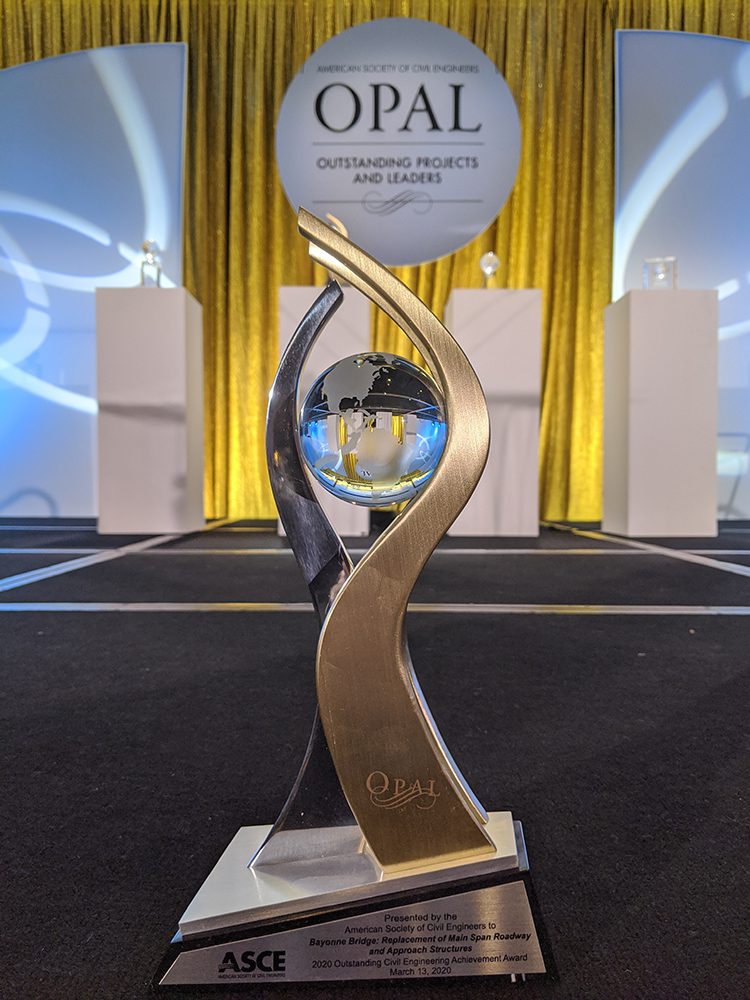 OMAHA, Neb. — The HDR-designed Bayonne Bridge Navigational Clearance project has been awarded the top project honor from the American Society of Civil Engineers. On March 13, the bridge redesign earned the organization’s Outstanding Civil Engineering Achievement award, given annually to the project that best illustrates superior civil engineering skills and represents a significant contribution to civil engineering progress and society. The award was presented at ASCE’s annual Outstanding Projects and Leaders gala.
