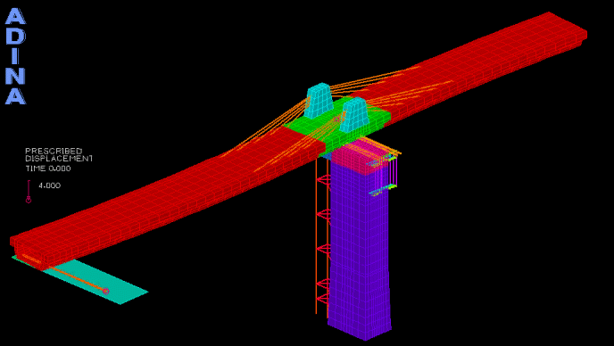 The frictional sliding of a prestressed concrete bridge girder can be studied with ADINA technology.