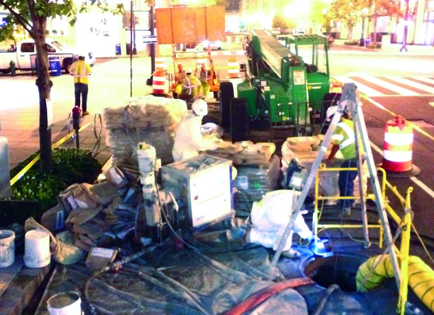 After further inspection, however, DC Water requested a change order for a full structural repair of the pipe. Because the F Street thoroughfare is a heavily trafficked business and tourist area, all work would be completed at night to minimize traffic disruption and bypass requirements.