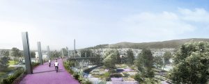 The team’s proposal is a water-centered program to reduce climate risk and ensure the proposed plans and projects reflect community needs, creating a network of lush green public places and reconnection with the Bay.