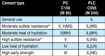 If special properties such as moderate sulfate resistance are required, a qualifier is added to the IL designation. The table below shows a comparison of PC vs. PLC to meet special properties for cements specified by either ASTM C150 or C595, or their counterparts from AASHTO, M 85 or M 240.