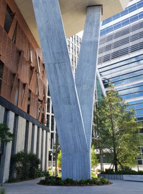 This high-profile project, with such discerning backers, necessitated eye-catching design. Architects chose innovative structural and architectural components for The Heron, such as the three-legged column at one of the building’s corners. They specified exposed architectural concrete finishes for some structural members to add to the building’s dramatic appearance. And though the effect is minor, PLCs can have a slightly lighter color than ordinary portland cement, imbuing the concrete with a slightly lighter color, too, which can be appealing to some design teams.