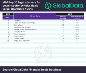 Citi has topped the latest M&A league table of the top 10 financial advisers for the power sector based on deal value in FY2018, compiled by GlobalData, a leading data and analytics company.