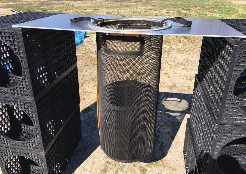 The only other option to hand-scooping sediment out of the bags was to remove the 4-foot-long filter bags from the inlet. But because of the product’s design and the inlet, this was nearly impossible without dumping sediment into the drains; the only opening was a 24-inch-diameter manhole, and the 4-foot-long bag couldn’t fit through without being tipped at a steep angle. Bright needed ACF Environmental to develop and implement a more maintenance-friendly solution.