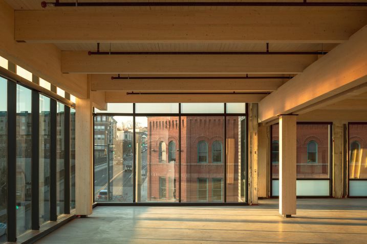 “Mass timber is a huge opportunity for embodied carbon reduction and C02 sequestration potential,” continues Feitel. “KL&A has a robust portfolio of mass-timber buildings with several in progress.” Mass timber has fueled the design and development industry’s recent gravitation to Cross Laminated Timber (CLT) as a structural alternative to steel or concrete. Typically made from young, sustainably harvested trees, strips of wood are laminated together at alternating directions to form a reliable, high-tolerance structural and architectural manufactured product.