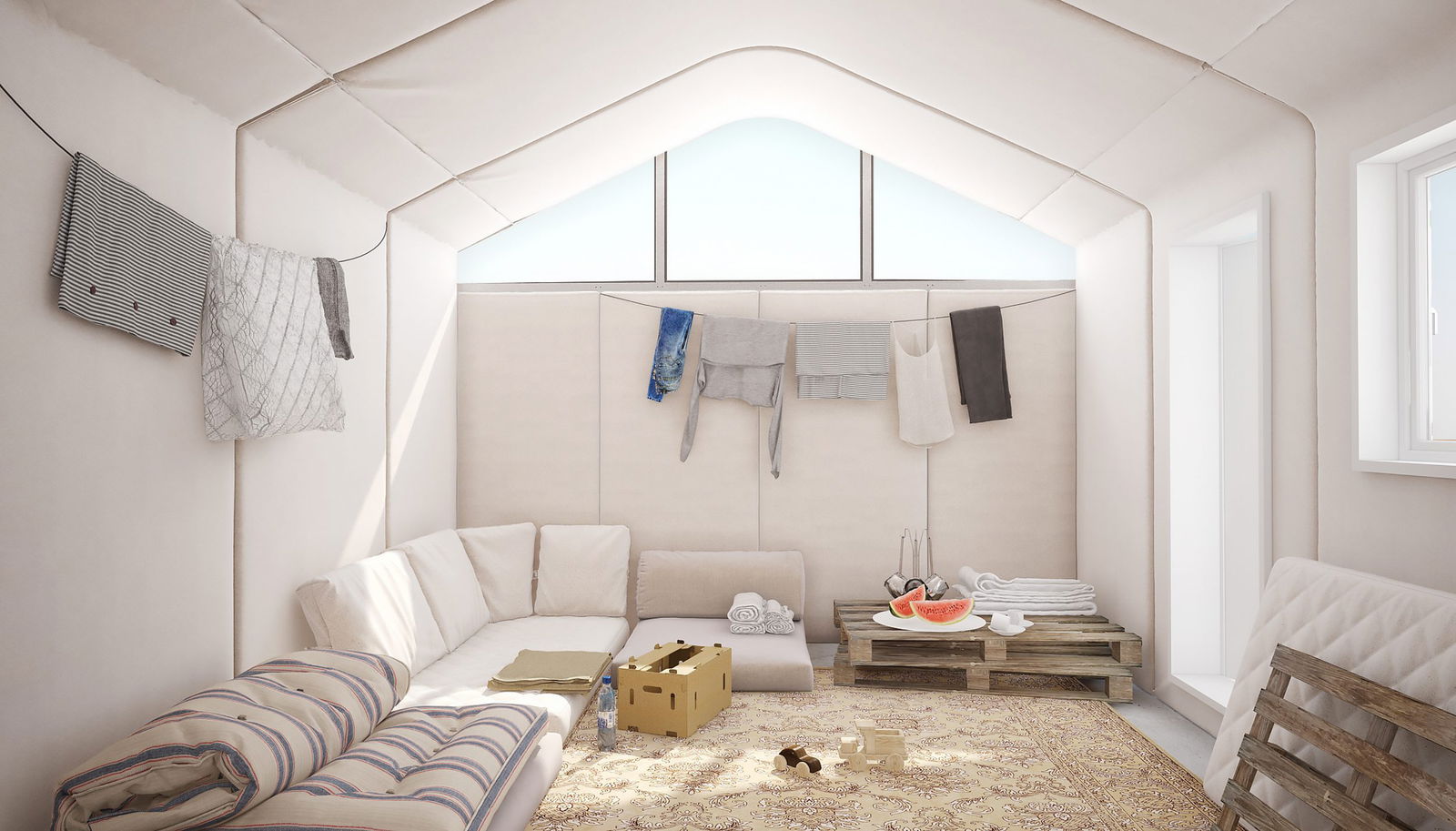 There are 25.9 million refugees in the world today (1). The World Bank projects that 143 million people will be forcibly displaced by 2050 (2). To house this tremendous number of vulnerable people is a monumental challenge. The dilemma is not only related to materials but to points of view: refugee camps are currently regarded as temporary installations. Yet, in certain refugee camps, such as Dadaab in Nigeria, many people have stayed for over 20 years - an entire generation. Living in exposed makeshift tents replaced every six months renders the current situation deeply flawed in terms of cost, sustainability, and living standards. More and more camps are long term residencies and so should be considered the foundations for new cities - sites to reintegrate displaced people and to rebuild thriving communities.