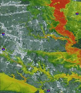 Eight Louisiana rivers reached record levels during the August 2016 storm. – Flood depth grid image courtesy of Dewberry