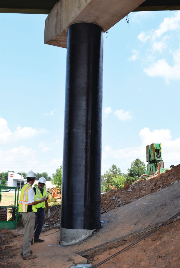 Milliken Infrastructure approached the SCDOT and Flatiron-Zachry to learn more about the problem and to determine if its RenewWrap Fiber-Reinforced Polymer (FRP) strengthening system could provide a quick repair for the deficient columns.