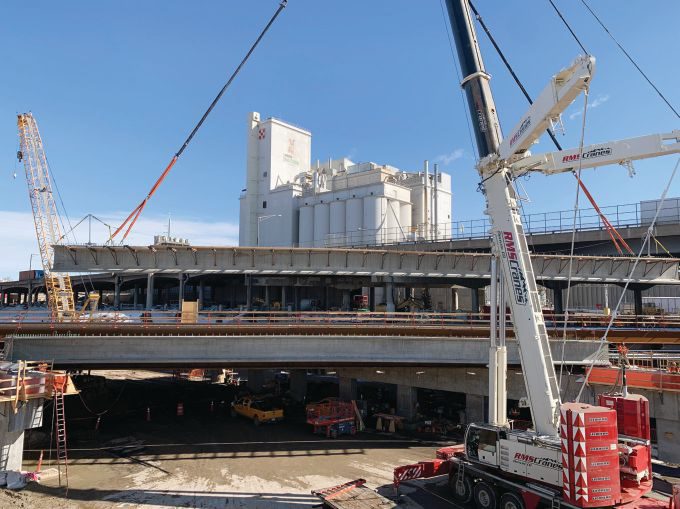 “As they excavated down to the final depth, Kiewit built foundation caisson walls to support the excavated earth. From an engineering standpoint, it’s hard not to be impressed with this top-down construction trenching methodology,” says Hays. “Then the cap over the top is essentially a massive bridge. So that meant traditional bridge-building methodologies—with abutments and pier caps and an astounding number of girders side-by-side—to create a 1,000-foot tunnel.”