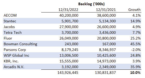 As illustrated in Table 2, of the 10 publicly traded firms reporting contract backlog data, nine out of 10 reported an increase year-over-year. On average, the weighted average backlog of these firms was up 10 percent over the prior year-end.
