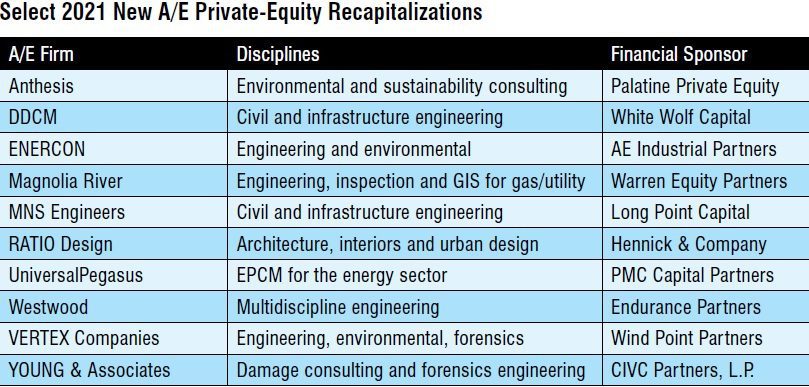 Whether in nature, design, health or business, lasting and significant changes seldom occur quickly, but often steadily through time. You open your eyes years later to a new paradigm or landscape that has unfolded, which ultimately requires recognition and adaptation. For the A/E industry, the most-dramatic shift in ownership models is coming from a new class of outside investors: private equity. Ten years ago, the notion of a sophisticated financial coterie joining forces with creative and cerebral A/E leaders certainly was a curious marriage. Today, these parties are rushing to the altar like never before.