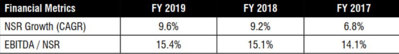 Revenue growth, as measured by three-year compounded average growth of net service revenue from 2017 through 2019, hit a high of 9.6 percent; and earnings before interest, taxes, depreciation and amortization expense (EBITDA) margins hit a high of 15.4 percent of net service revenue.