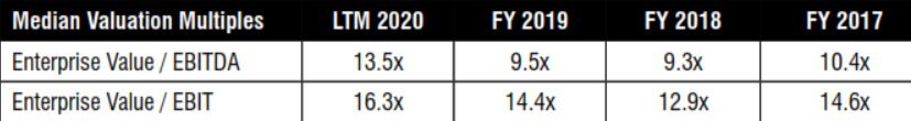 In terms of valuation metrics, the enterprise values of the 10 public firms tracked in the “A/E Business Valuation and M&A Transactions Study” measured as a multiple of EBIT and EBITDA during the last 12 months ended Dec. 31, 2020, were up relative to the previous three fiscal-year ends (note that many of the public firms have fiscal years ending on Sept. 30).