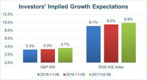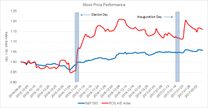 Through Feb. 6, 2017, the S&P 500 increased 6 percent, and the A/E Index increase reached as high as 20 percent. The A/E index has since decreased to about 16 percent (as of Feb. 6, 2017), but has still outpaced the overall broad market.