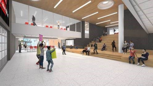 The 28-acre site presented a unique challenge. With an occupied high school and middle school already on-site, as well as athletic fields, community resources, and 10 acres reserved for future development, the team focused on a vertical design to maximize the project footprint. Stantec designed a seven-story solution that unifies the site, integrates the campus with the nearby community, offers robust safety and security measures, and resolves significant traffic and parking issues. The new 300,000 square foot high school will provide a comprehensive, flexible, and future-ready learning environment for 1,200 students with growth capacity to 1,500 students.