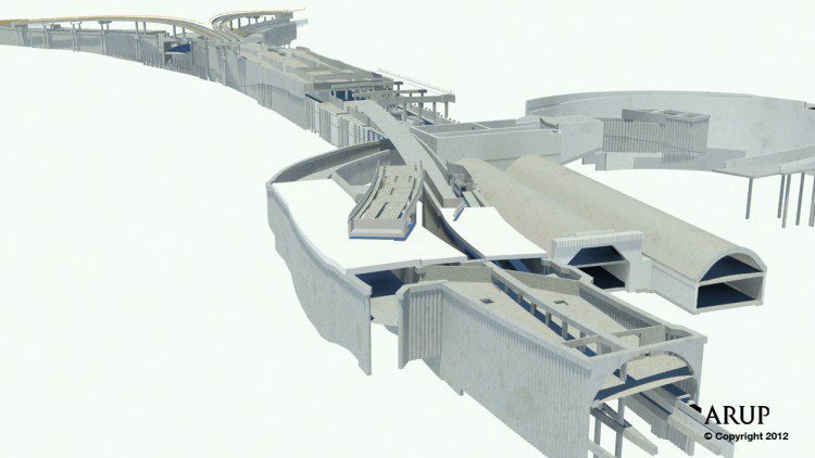 “We identified early on that we couldn’t deliver the entire project using conventional methods and a team located in a single office,” explains Andrew Lewis, an associate at Arup as well as structural modeling leader for the roadway project. “So we teamed up with Parsons Brinckerhoff in 2006 to form the Parsons Brinckerhoff–Arup Joint Venture (PBAJV).”