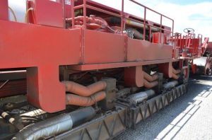 The specified hot-mix asphalt is delivered to the repaver and deposited in the front receiving hopper, where it’s conveyed the length of the repaver by a drag-slat conveyor to the paving screed, where it’s laid and compacted. This work shouldn’t be done when it’s raining or if there’s a threat of rain. The ambient temperature should be at least 50 degrees Fahrenheit and rising. If the temperature reaches 55 degrees and then starts cooling, the application should cease.