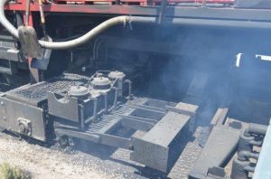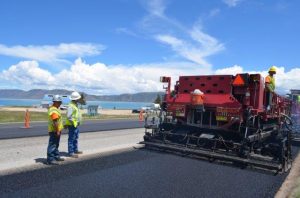 5. Applying the virgin hot mix while the temperature of the recycled mix is still 225 degrees Fahrenheit.