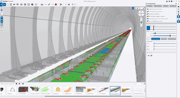 In Trimble Connect, a colorized point cloud was compared to the design to identify areas that required rework. All graphics: Credit Donatsch + Partner AG.