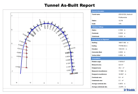 As-built cross sections are measured by the construction company in the field using the Trimble Access Tunneling Module. The Tunnel As-Built Report can be exported directly from the controller. All graphics: Credit Donatsch + Partner AG.