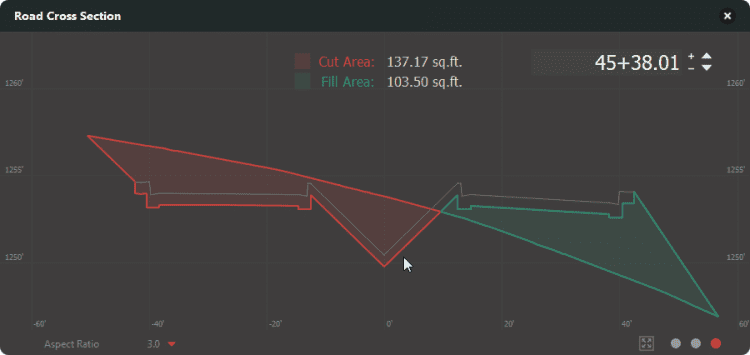 Another powerful addition to IW360 v2 Enhancements is cross-sections. Joining the profile viewing and editing features, engineers can now view cross-sections of roadway designs. Cross-section views display three types of information: 1) road assembly, 2) super-elevation, and 3) cut and fill areas.