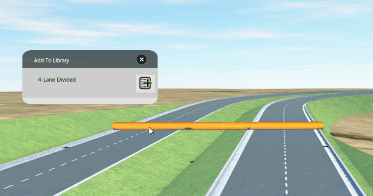 After a component road has been defined, it can be added to the component road library.