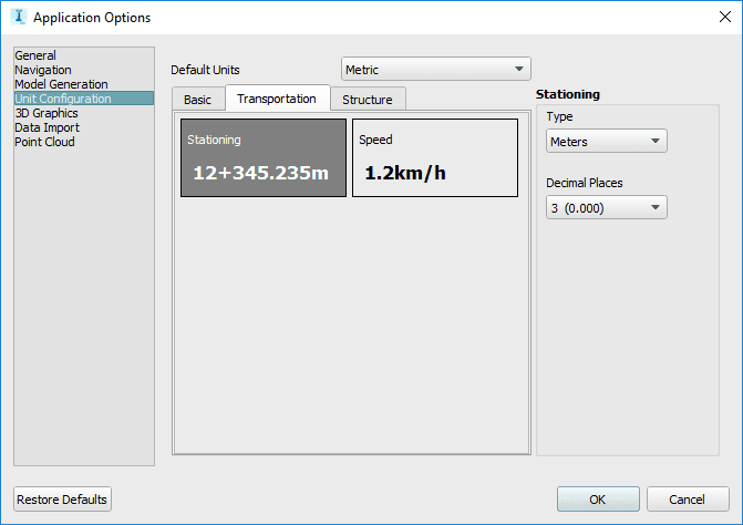 With v2 Unit Configuration settings, the precision for 11 unit types can be set independently, including length, width, station, design speed, stress, moment and others. This is a major improvement for designing roadways. Users can now set the precision for PVI station and elevation to three-decimal precision, for example, and simultaneously set the roadway design speed to a more-practical precision of one decimal.