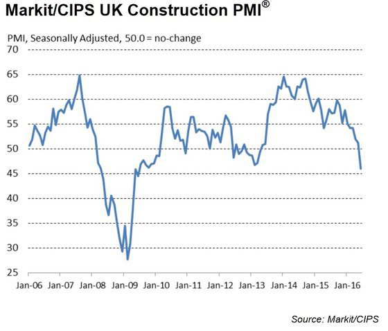 “Construction firms are at the sharp end of domestic economic uncertainty and jolts to investor sentiment, so trading conditions were always going to be challenging in the run-up to the EU referendum,” said Tim Moore, senior economist at Markit. “However, the extent and speed of the downturn in the face of political and economic uncertainty is a clear warning flag for the wider post-Brexit economic outlook.”