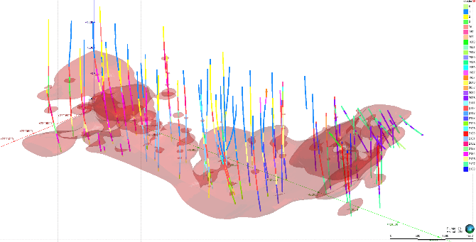 Images: (Top) Structural trend clustering in Leapfrog Works before adjusting parameters; and (bottom) after adjusting parameters to show a more continuous volume with fewer clusters, honouring the geological interpretation and the structural trend more closely.
