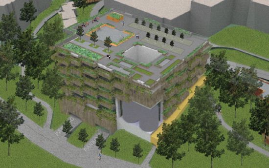 A pedestrian bridge is designed to create an experiential journey with science-related educational programs. Building tops within the site are targeted for solar-panel placements. Rainwater will be diverted to underground cisterns to reduce irrigation costs and serve as a useful resource during long periods of drought.