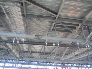 The resulting final design would include six long-span steel-roof trusses, the largest of which is 185 feet long and 15 feet deep. The trusses transfer to the columns a combined live and dead load of 1.95 million pounds. The detailed design of the trusses also accounted for MEP equipment routing by aligning the truss panels to accommodate the HVAC ductwork.