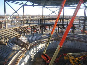 The recurring challenge with designing and constructing this project was the elliptical geometry of the new sanctuary. From digital hand sketches to collaborative 3D models to digital point layout and point-cloud capture, modern technology tools were indispensable in making the vision a reality. Construction and buildout continue, and they’re scheduled for completion in time for Easter celebrations in early April 2017.