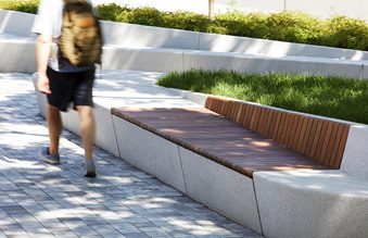 The simple concept required a nuanced approach and close attention to detail to create a pleasant plaza for strolling and refreshment, and not just “more room to walk.” Bronze plates set in the street serve as urban markers, identifying the grand turn-of-the-century department stores and commercial buildings that lend the street its storied heritage. Newly laid modular paving marks different spaces and their uses. A gradient from dark gray to light gray unobtrusively informs users on limits of vehicular lanes as well as pedestrian and bicycle zones.