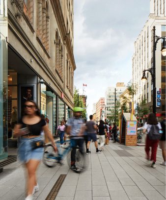 “Yes!” says Architect Partner Sonia Gagné. “We are pleased to have made a significant contribution to this important urban revitalization project for Sainte-Catherine Street West—to enhance the business artery’s reputation in the retail realm, not to mention its nationwide visibility. Equally, the redesign drastically increases the greenery in this area, enhancing the pedestrian experience and making for a more-sustainable urban realm. The project increases vegetation by 46 percent, and we’ve planted 14 times the original number of trees.”