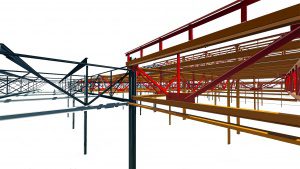 Construction and A&E models typically are a level 300, whereas a fabrication model/drawings would be a 400 level. In a typical 300 model, there’s a column in position in the correct location, orientation and size are correct, and beam framing is there, but there’s no connection. It may or may not have a base plate—it’s just passing on the design intent. Whereas level 400 is fabrication level—base plates, connections, cap plates, clips and angles for beams are all there.