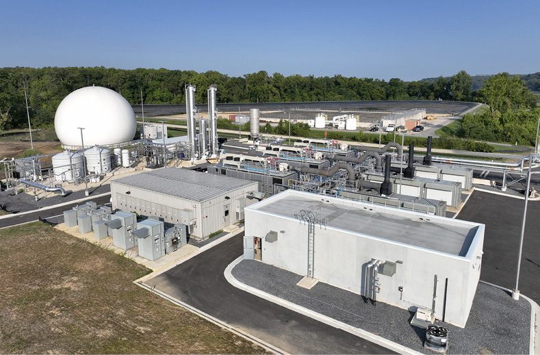 One unexpected challenge came when delivering gas to Washington Gas, where a “mini gate station” performs several important procedures, including pressure regulation, filtration, odorization (when odor is added), metering and monitoring. “The mini gate became a constraint on design, as we had to provide the quality of gas the utility was expecting,” notes Uglevich. “We had many conversations with the utility about how to do that, and our design evolved as a result. It is critical to understand the gas and monitoring requirements since the utility can shut off the connection if the gas is off-spec, and then the gas must be used internally or burned off with a flare.”