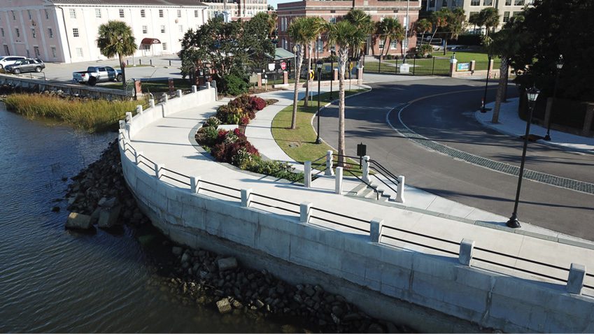 A $64 million seawall improvement project in Charleston, S.C., has been designed and constructed to provide a line of defense against rising sea levels.