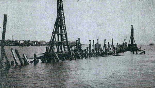 The Battery is a seawall on Charleston’s southern peninsula that overlooks Charleston Harbor, where the High Battery and Low Battery seawalls merge. The Low Battery was constructed as part of a large land-reclamation project undertaken in two phases: The first section (1909-1911) extended from Tradd Street to King Street. The second phase (1917-1919) extended from King Street to the “Turn” at the intersection with East Battery Street. The concrete wall of the Low Battery was constructed on a timber deck supported by timber pilings.