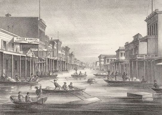 The lure of gold attracted people from across the country and around the world. Beginning in 1849 and peaking in 1857, an estimated 300,000 people descended on the area, which was founded as the City of Sacramento in 1850. Throughout its history, the city would navigate many ups and downs, including disease and flooding, and fabulous works of economic, community and engineering development.