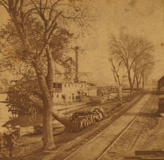 Spurred by the Gold Rush in 1849, businessman Samuel Brannan established a warehouse and storefront at Sutter’s Embarcadero, a primitive ship dock on the shore of the American River. As he and others promoted the area as a “new town,” it rapidly became the center of commerce and trade. By 1852, 165,000 tons of goods were arriving at the waterfront. Huge “California Wagons”—2-ton freight wagons drawn by 10 mules—hauling 6 to 8 tons of cargo would depart the waterfront and lumber up K Street headed to the distant mining camps scattered across northern California.