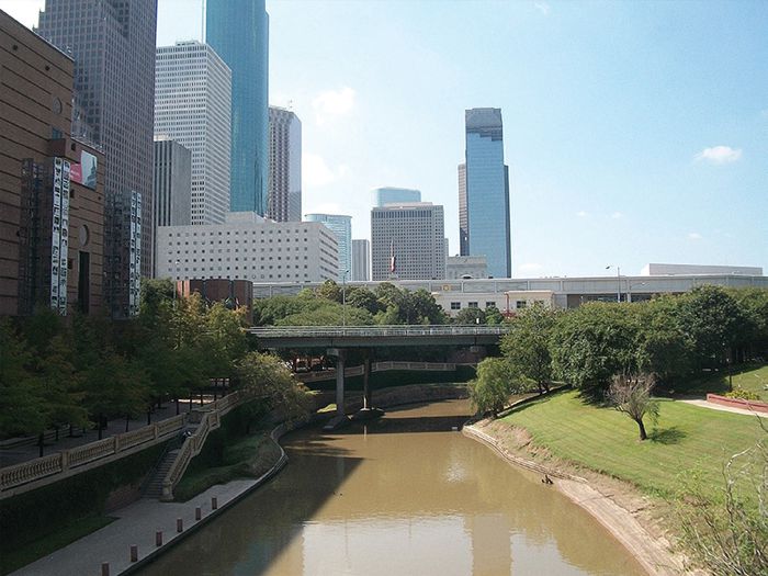 Houston’s Buffalo Bayou runs through downtown and right along the theater district—home to some of the most popular entertainment venues in the area, including the iconic Wortham Center for the Performing Arts. Although the bayou adds to the overall artsy nature of the area, it can be destructive during flood events. Nothing was as devastating, however, as Hurricane Harvey in 2017.